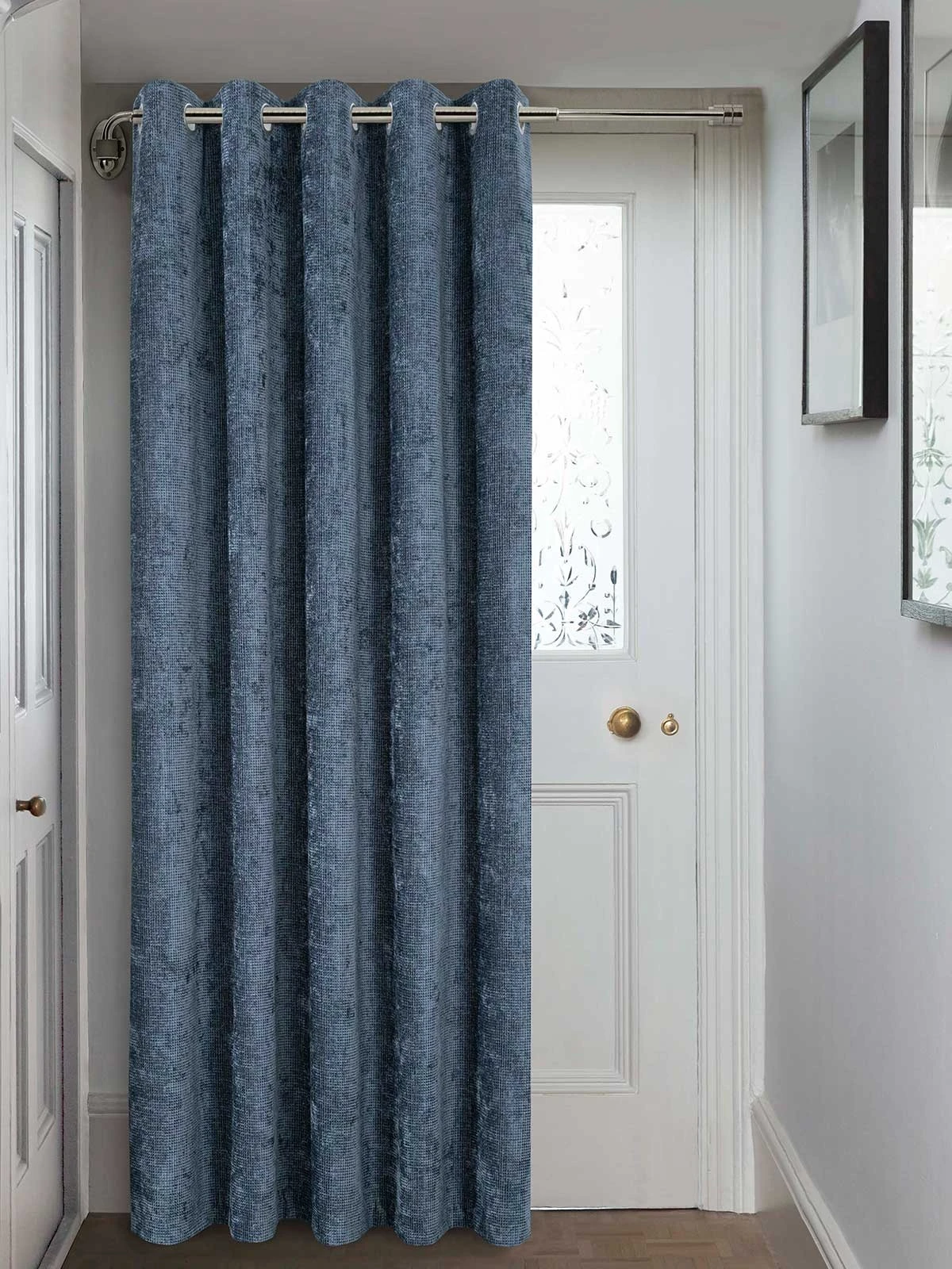 Crafted from supersoft chenille to create a luxurious textured finish, the contemporary waffle design adds interest to this door curtain. Featuring a patented thermal blackout lining designed to provide 100% blackout from light as well as block out heat in the summer and keep draughts at bay in the winter. Topped with an eyelet header to complete the look. Sold as a single panel. Pairs of curtains and co-ordinating cushions are also available.