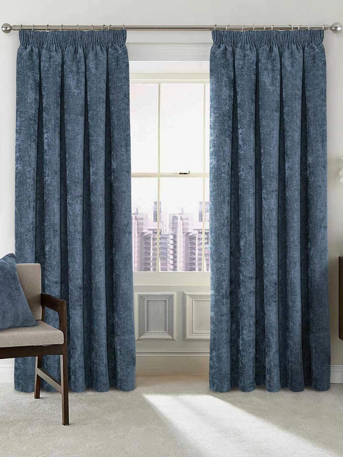Crafted from supersoft chenille to create a luxurious textured finish, the contemporary waffle design adds interest to these curtains. Featuring a patented thermal blackout lining designed to provide 100% blackout from light as well as block out heat in the summer and keep draughts at bay in the winter. Topped with a pencil pleat header to complete the look. Sold as a pair. Also available with an eyelet header. Co-ordinating cushions are available.