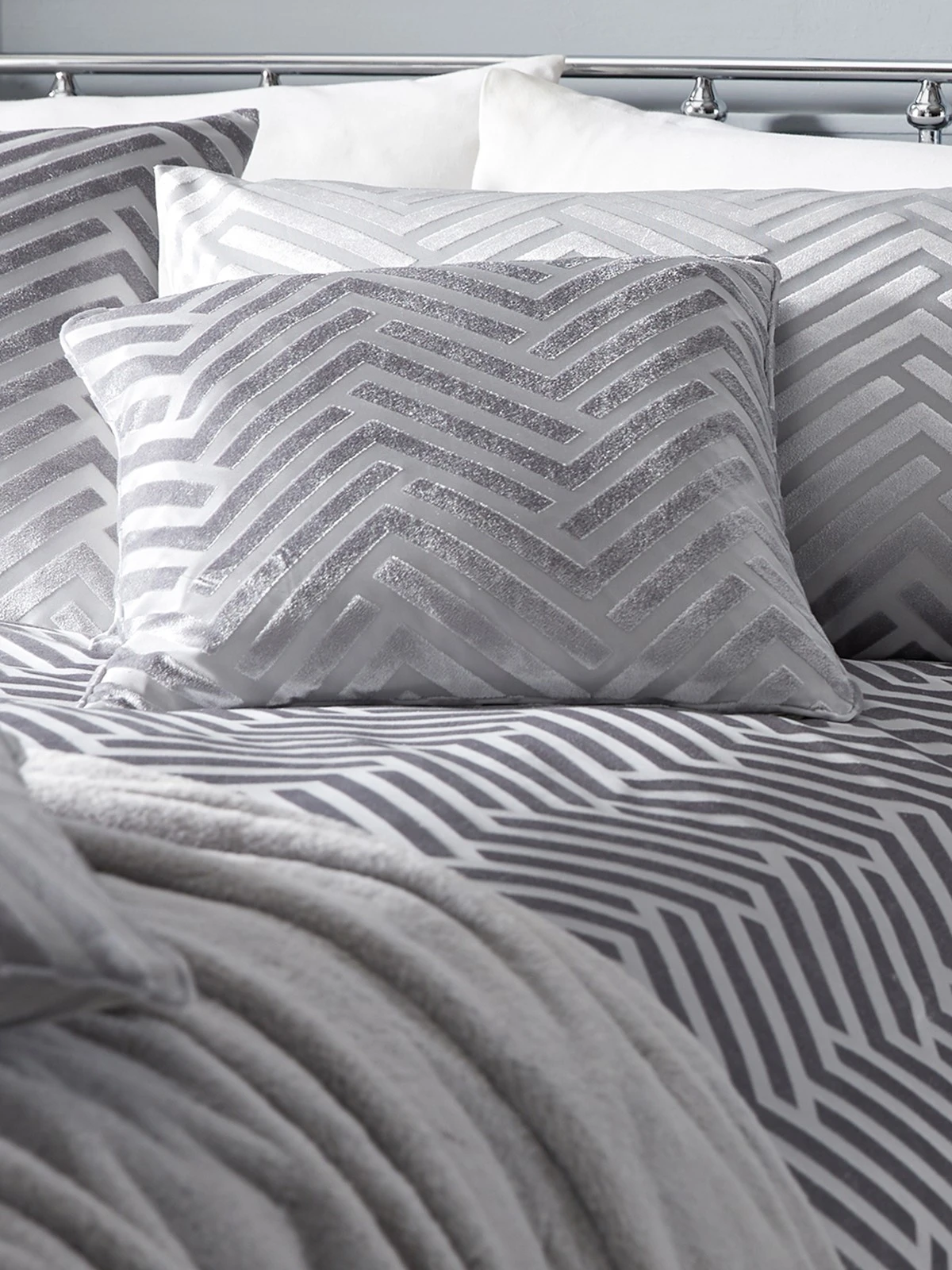 Faye is a sleek Art Deco inspired design featuring a geometric herringbone pattern & crafted in sumptuous devoré velvet fabric. Available in a selection of modern shades that perfectly complement the Old Hollywood glamour of the design & a piped trim to complete the look. Complete with the matching bedding & curtains to transform your room into a stylish boudoir.