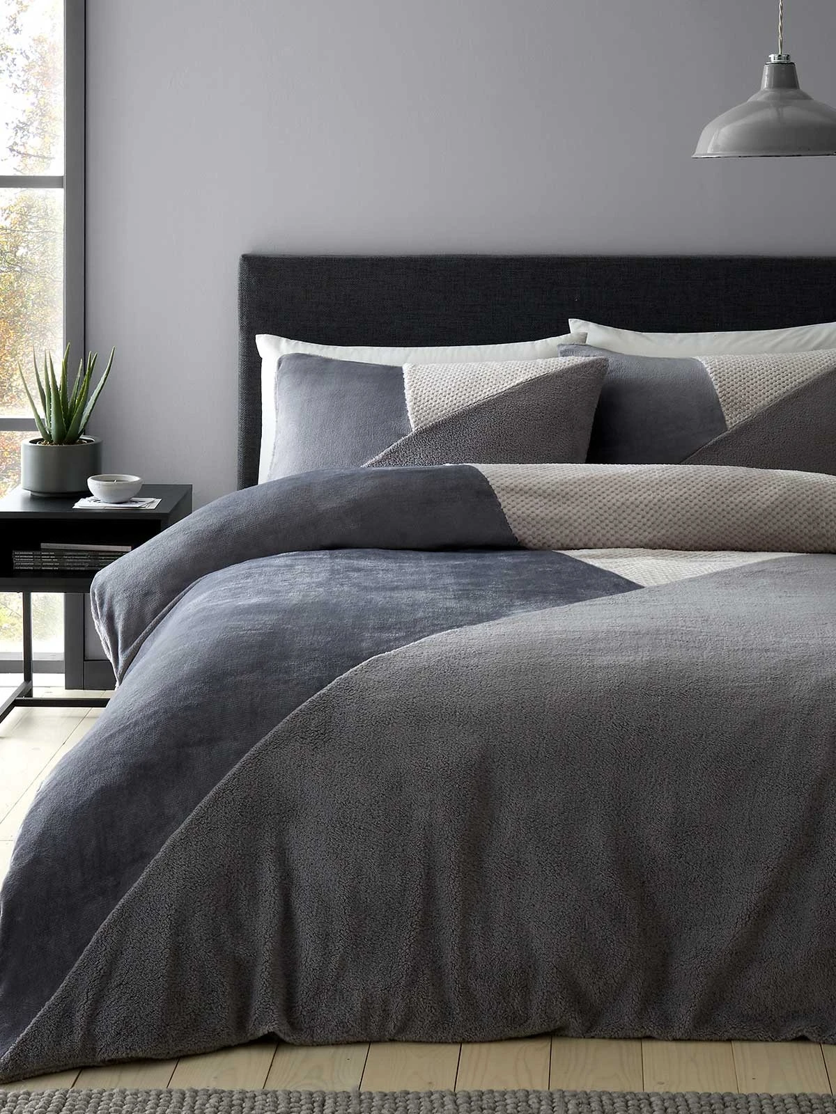Create a warm and cosy sleeping space with this Larsson geo splice bedding. The geometric pattern adds a modern and stylish touch to your bedroom décor while the soft sherpa provides ultimate warmth and comfort during colder nights.