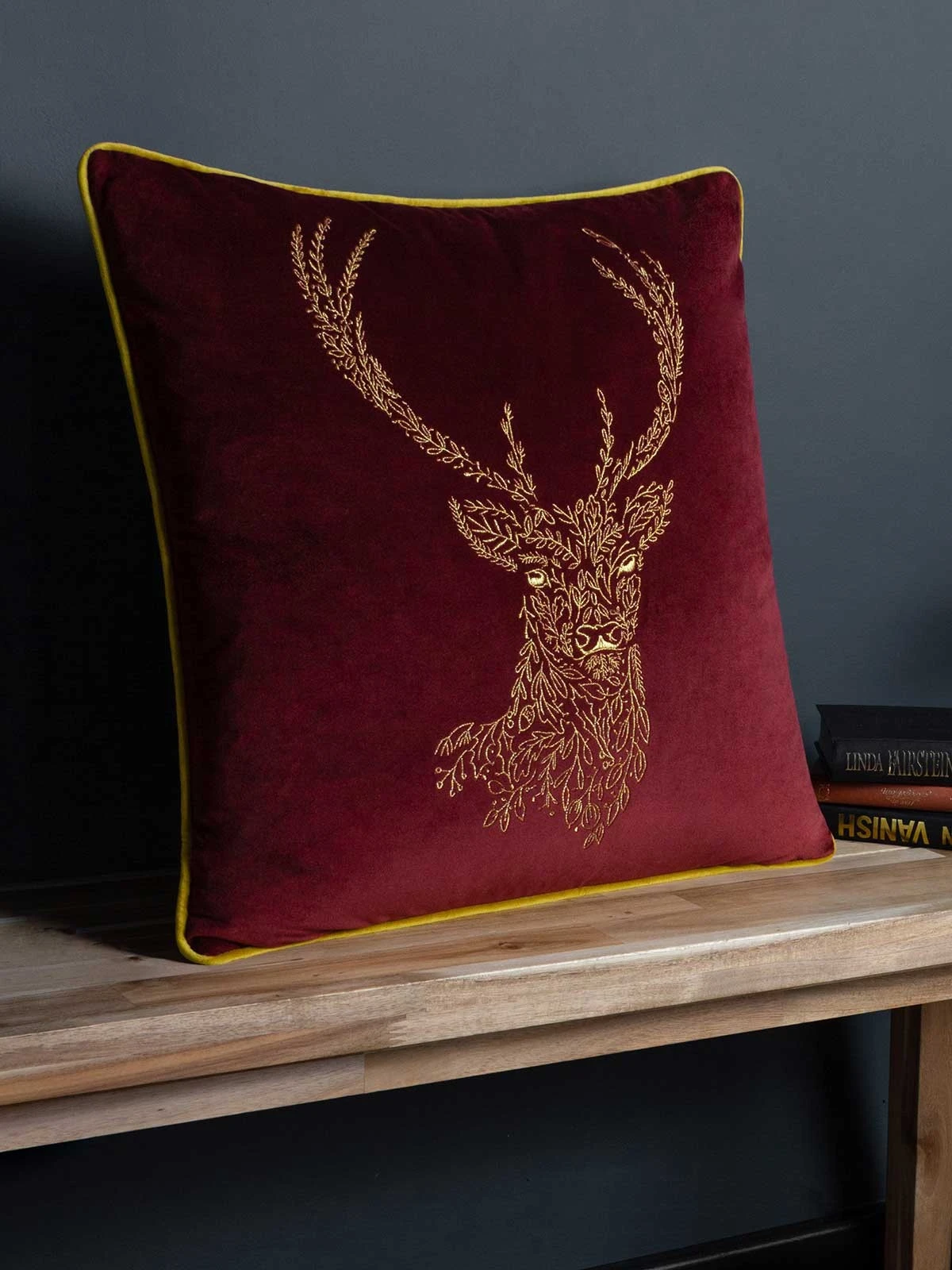 Inject some warmth into your home with this beautifully embroidered autumnal forest cushion. If cosy is what you’re looking for then this cushion is perfect for you! The rich autumn colour palette compliments the golden embellished animal and the velvet feel with piped edging is bound to add luxury to your home.