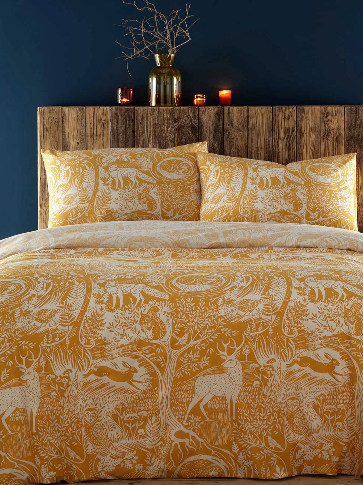 Invite nature into your home with this Winter Woods duvet set. The design features a stunning woodblock inspired print with plenty of woodland animals and trees. Featuring a co-ordinating reverse design.