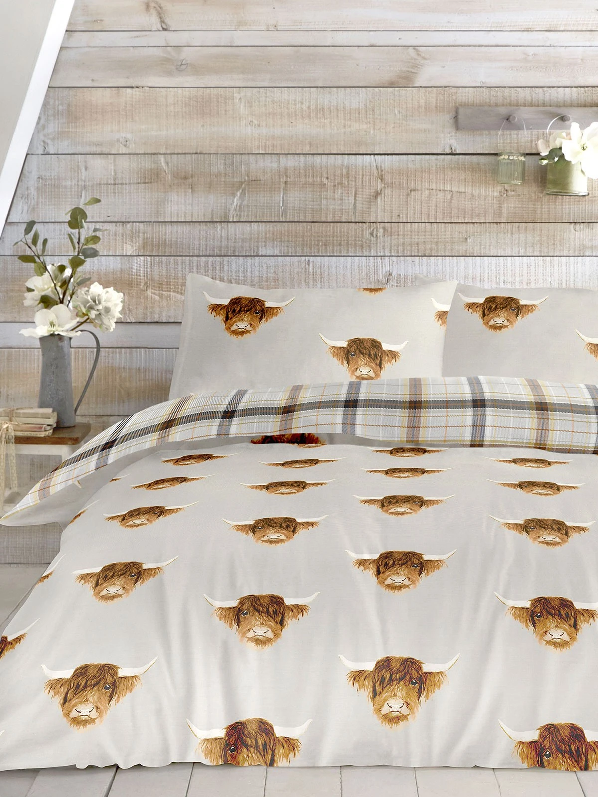 “A beautiful Natural Highland Cow duvet set.