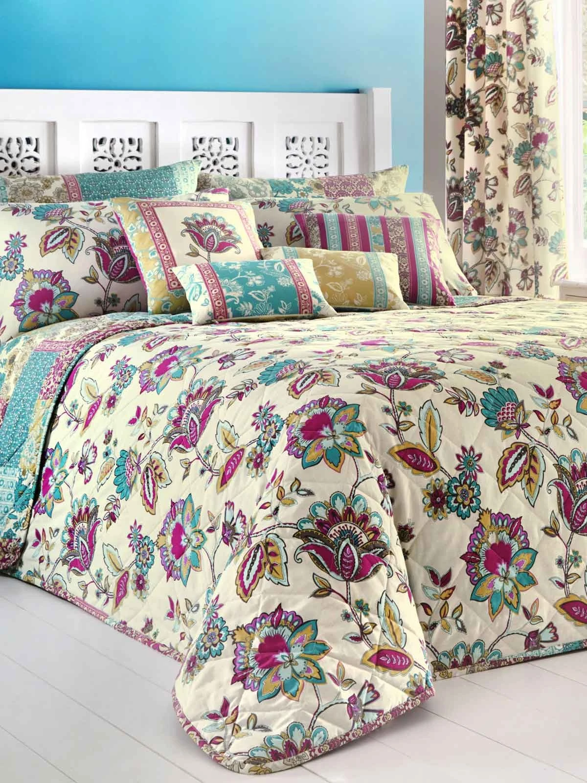 Marinelli has been adapted from an early Jacobean hand drawn floral design. It features ornamental hand drawn floral trails in reds and teals and is printed on easy care polycotton fabric.