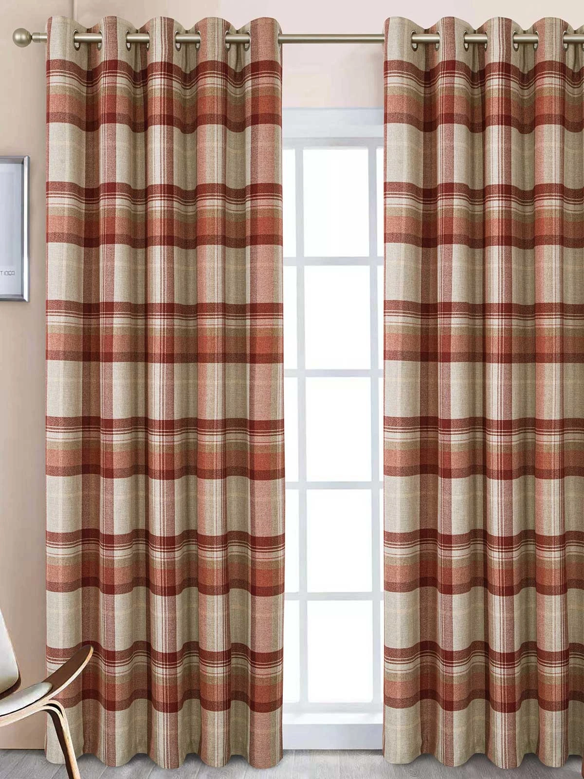 The timeless red check design brings a heritage feel to these traditional curtains. The brushed fabric gives a soft, warm handle and the thermal wadded lining helps retain warmth. The eyelet header completes the classic look and creates a natural drape. Sold as a pair. Also available with a pencil pleat header. Co-ordinating cushions are available.
