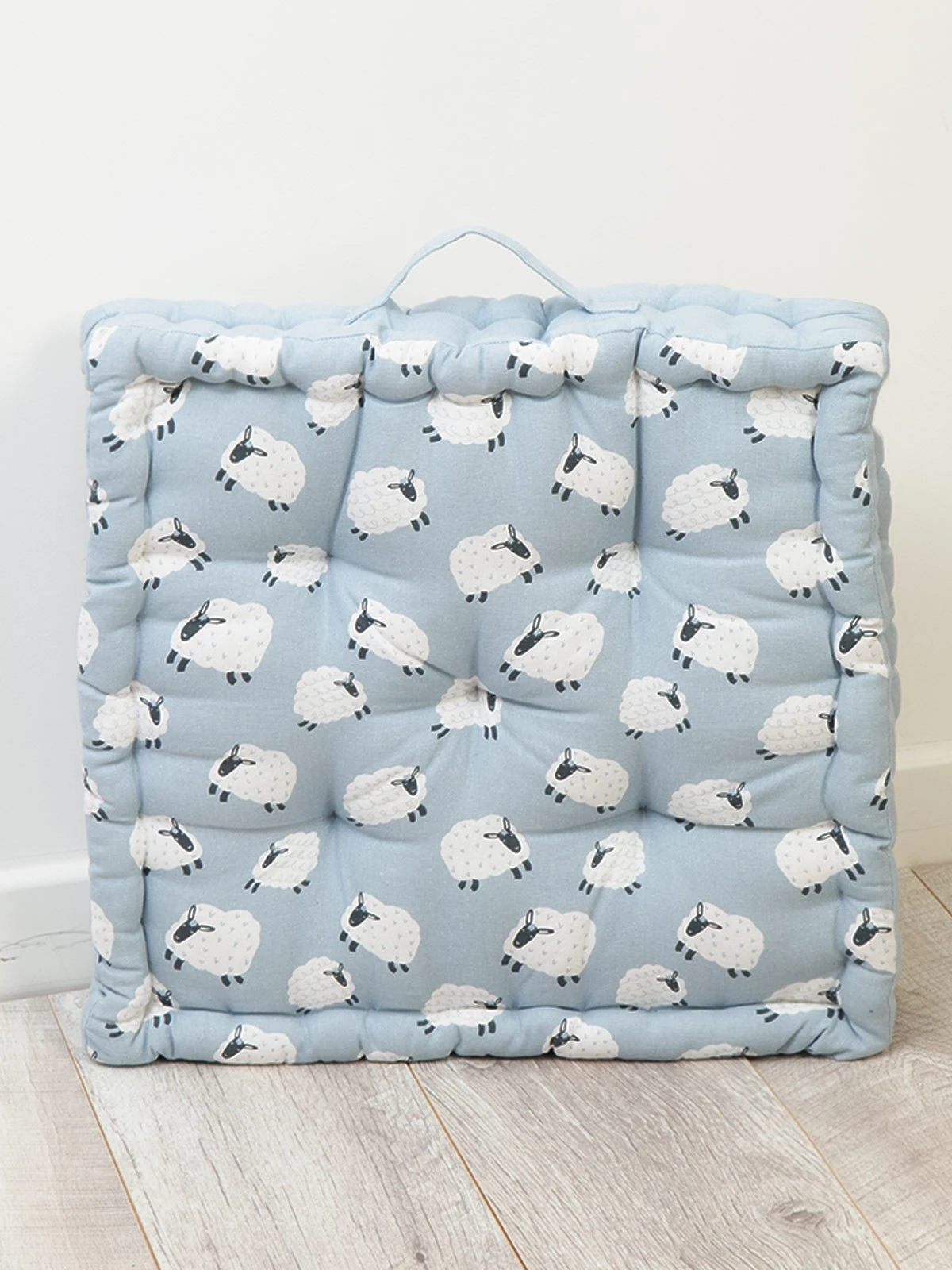 Freshen up your kitchen with our farmyard favourite sheep print booster cushion. Padded for comfort and comes with a handy carry handle making it easy to move around the home. Made from 100% cotton with a polyester filling for durability. 50cm x 50cm x 10cm. Co-ordinating items are available.
