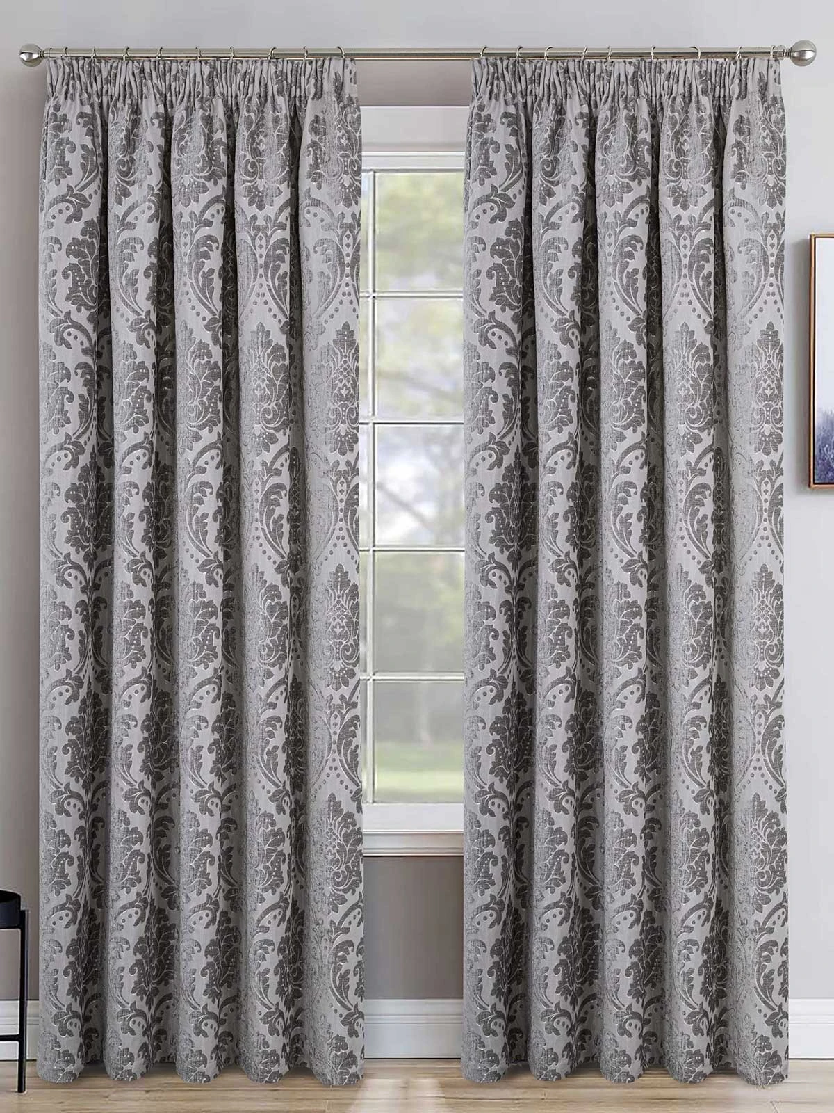 Crafted from a luxurious velvet damask jacquard fabric, our Valencia curtains bring a touch of opulence to the home. The heavyweight fabric produces a superior drape and the thermal wadded lining provides privacy and warmth. A classic pencil pleat header completes the look. Sold as a pair. Also available with an eyelet header. Co-ordinating cushions are available.