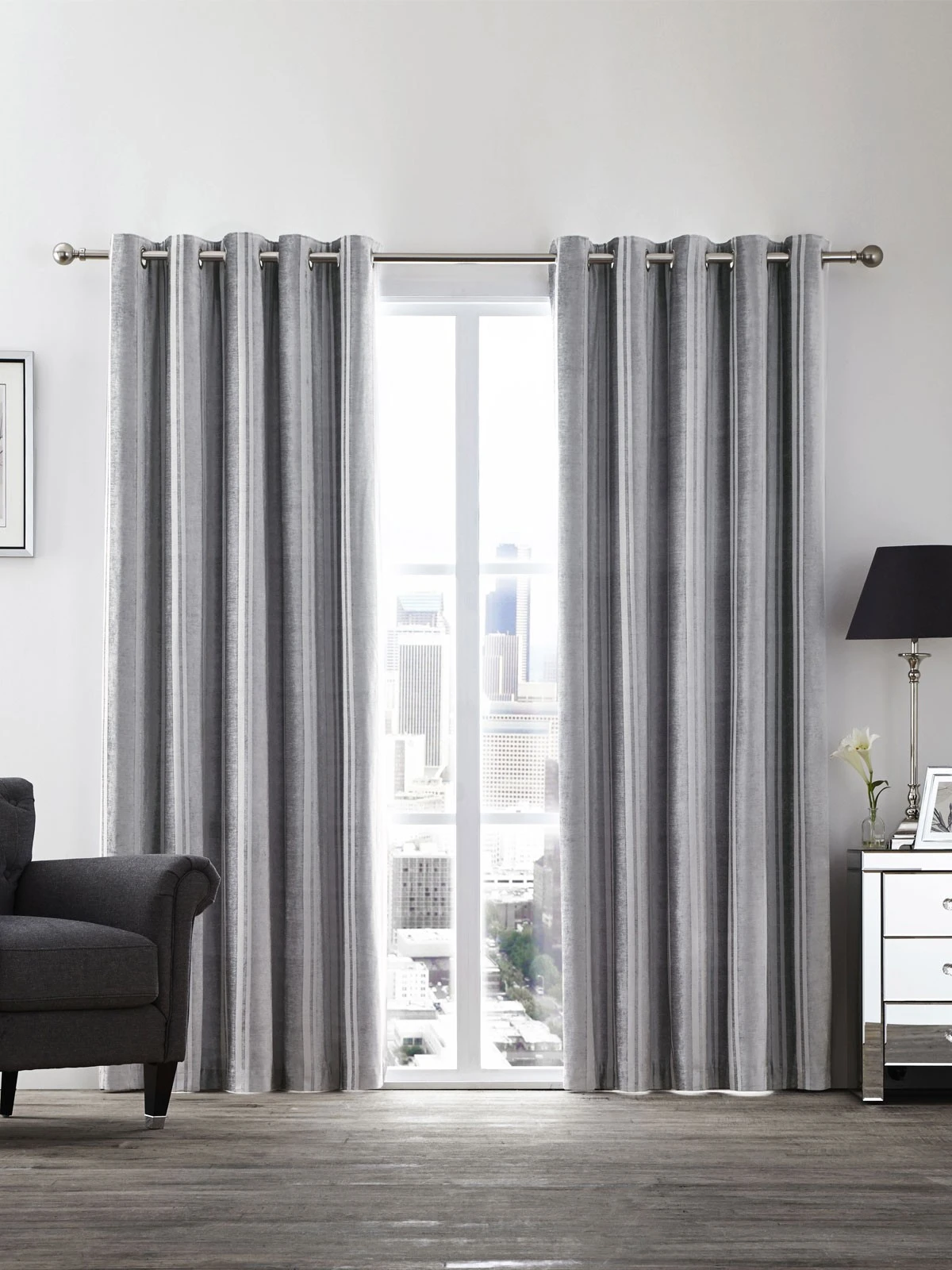 Add a touch of luxury with our sumptuously soft velvet stripe curtains. The heavyweight velvet fabric drapes beautifully and creates a stylish, sophisticated look. With a thermal wadded lining for warmth and an eyelet header for ease of installation, these curtains are a great addition to any home. Sold as a pair. Complete the look with the co-ordinating cushion.