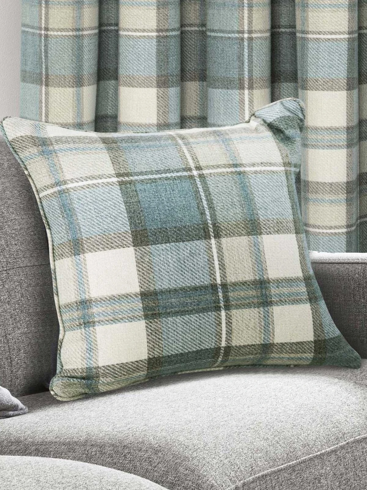 The teal blue and natural check design brings a fresh feel to this traditional cushion. The brushed fabric gives a soft, warm handle and the piped edge creates a premium finish. Also available in a larger size. Pair with the co-ordinating curtains to create a cohesive look.